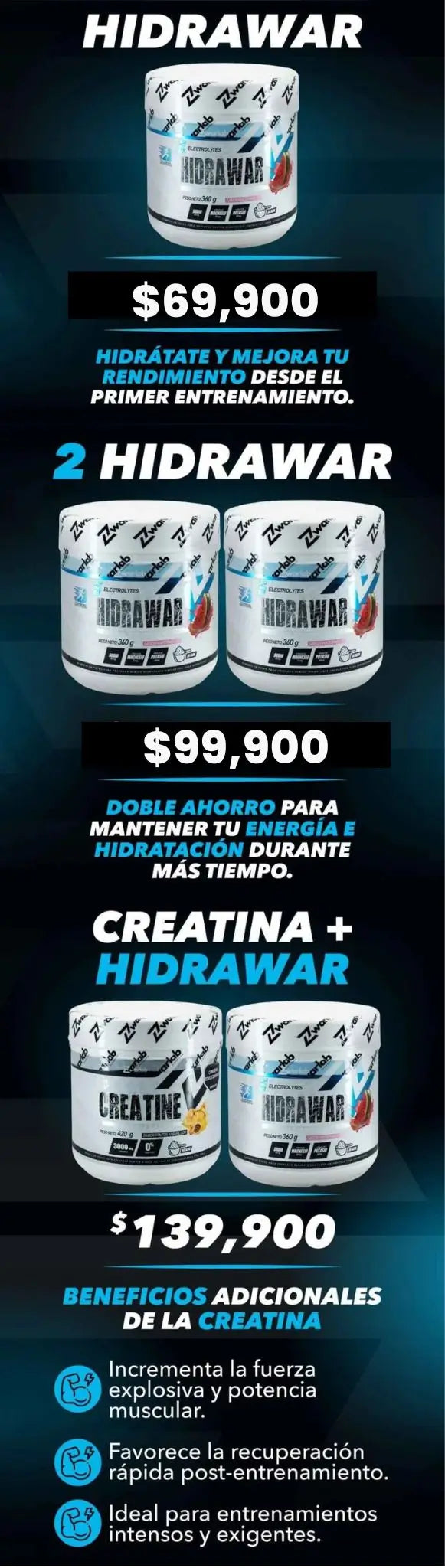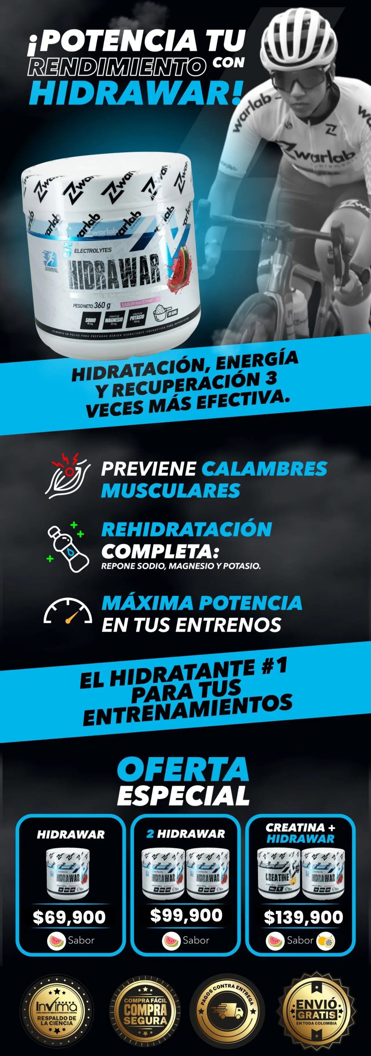 ✅ Mientras otros productos solo ofrecen energía momentánea, HidraWar se enfoca en una hidratación completa y reposición de electrolitos esenciales, manteniendo la función muscular y previniendo calambres.